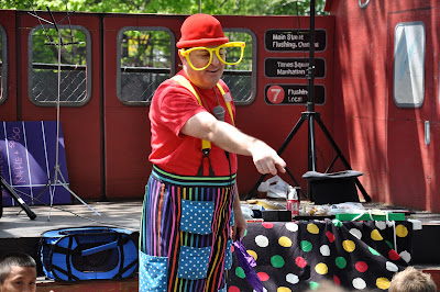 The build up to this weekend's Memorial Day festivities was exactly as you'd expect for late May: hot and muggy with occasional bursts of rain. We were hitting the ice cream truck on a daily basis early in the week, and the sprinklers came on for one gloriously summery afternoon at SGP. Carolina was a bit hesitant to get her feet wet at first, but within the hour I found her scooping (and drinking--ick!) cups full of dirty water from the emerging drainage pool. Of course, all that heat and sunshine wasn't here to stay and by Thursday, things were heading for a rainy finish to the week. Which is really too bad because our friends Julie and Dawn have been planning the heck out of the Memorial Day Fair at the park which was slated for Saturday. But by the time I was running errands on Friday morning, they decided to go with the rain date on Sunday since the forecasts weren't looking good. And considering how wet, cold and windy today ended up being, they definitely made the right call.
